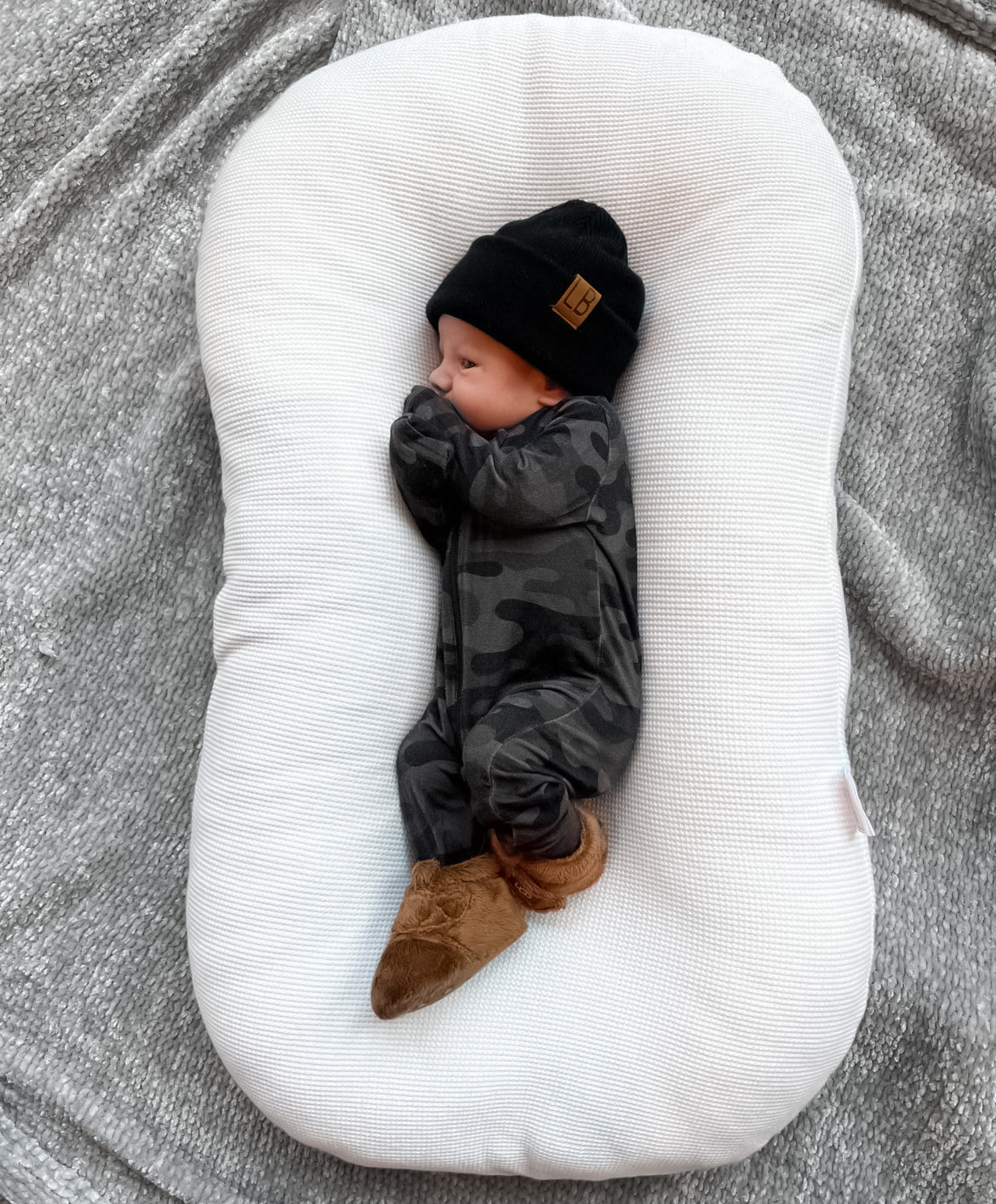 - Model: Jaxton Dean is 2 weeks old and wears a size Newborn & a Newborn size Beanie