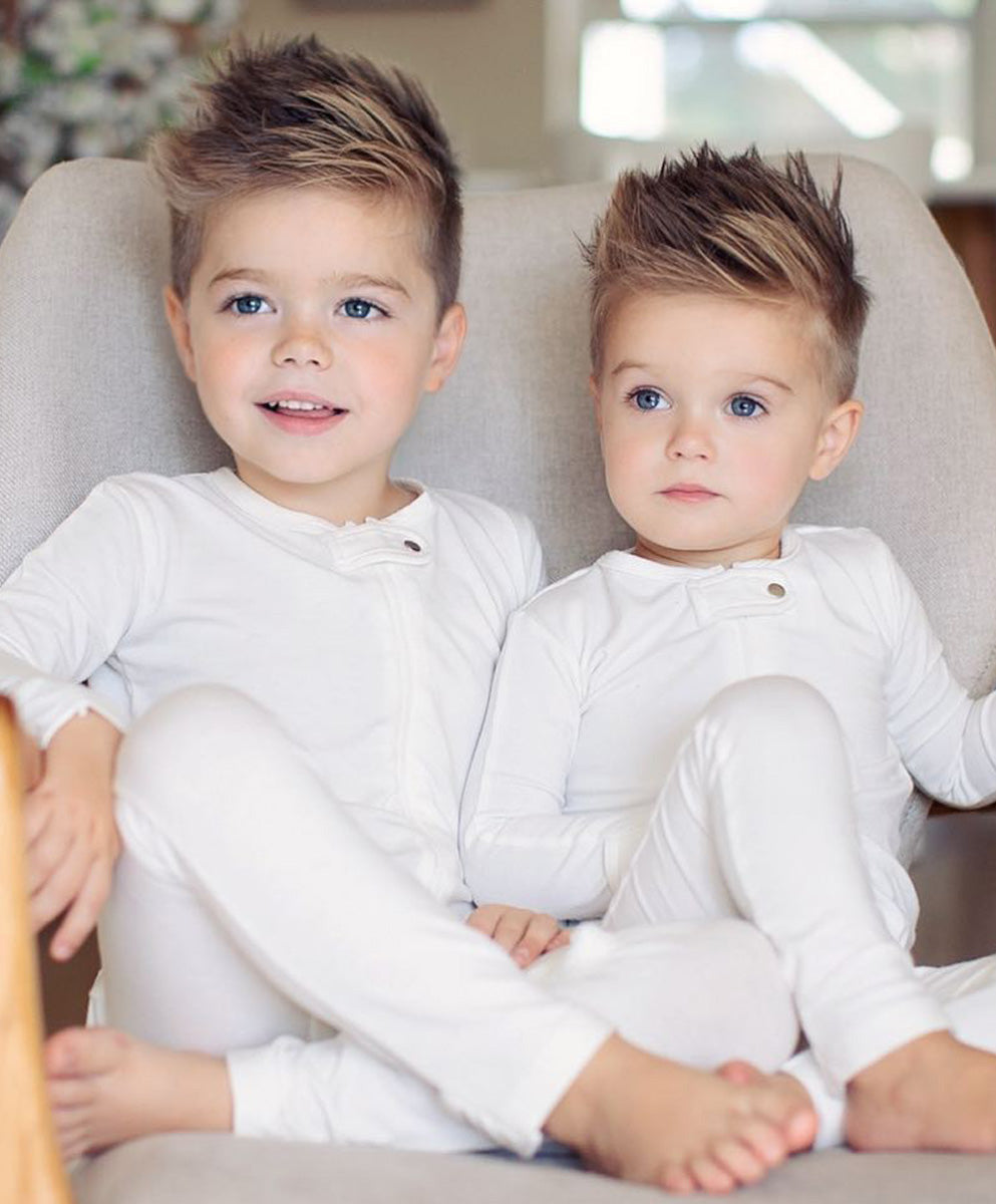 Ivory LUXIE® - the perfect blend of fun + coziness for your little bundle of joy. Each size comes with flip-over mitten + footie cuffs, promising a comfy fit for both active play + quiet nap times. Crafted from our signature Bamboo blend, this fabric is oh-so-soft, stretchy, + breathable, making it a perfect for little ones. The foldable cuffs add an extra layer of coziness + help protect against fingernail scratches, making this outfit a one-stop solution for all your baby's needs.