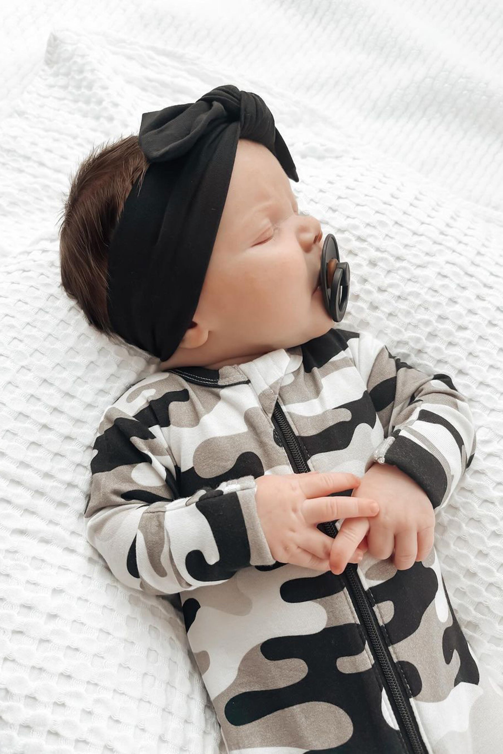 Light Camo LUXIE® — the ultimate comfort for your little one. Our unique custom blend of Bamboo + Pima Cotton creates an unbelievably soft, stretchy, + breathable fabric that your little one will love. The foldable hand + footie cuffs offer added warmth + protect against fingernail scratches, making this the perfect all-in-one solution for your baby’s everyday outfit.