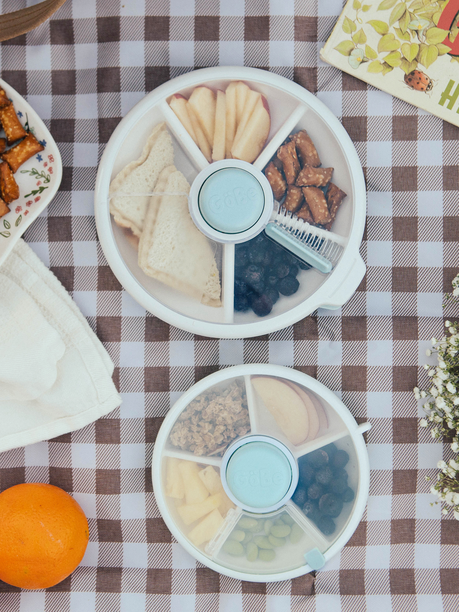 The GoBe Snack Spinner is the only spill resistant snack container that allows your child to choose between five different snacks at once! With the push of a button, your child can jump from snack-to-snack, all while reducing spills and mess! More snacking variety for them, less mess for you.