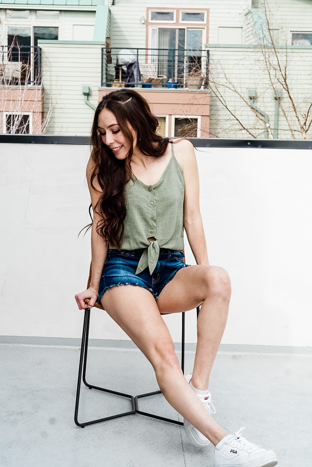 Easy, light weight + trend-savy! Designed with a button down front, a flattering v-neckline, adjustable straps + the perfect casual fit. Get the perfect Spring throw on tank look + to pair with your favorite denim.