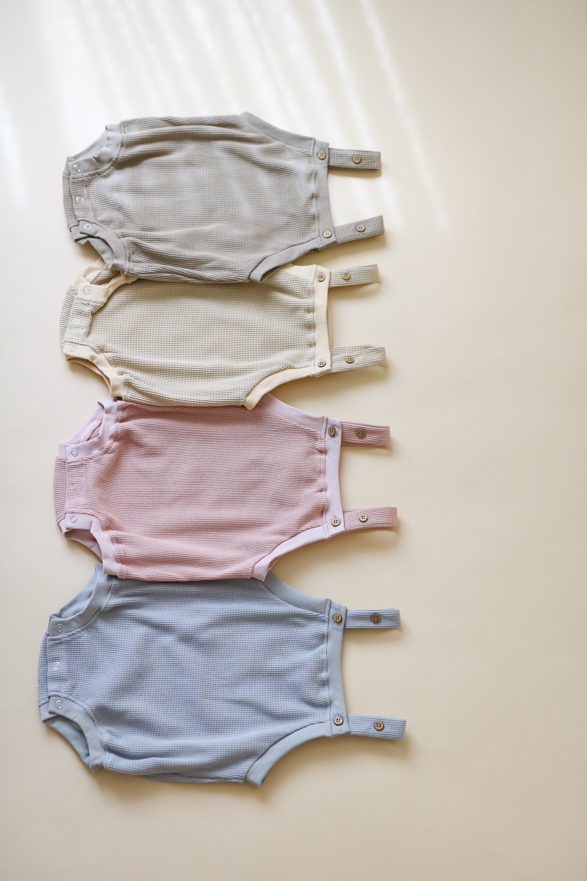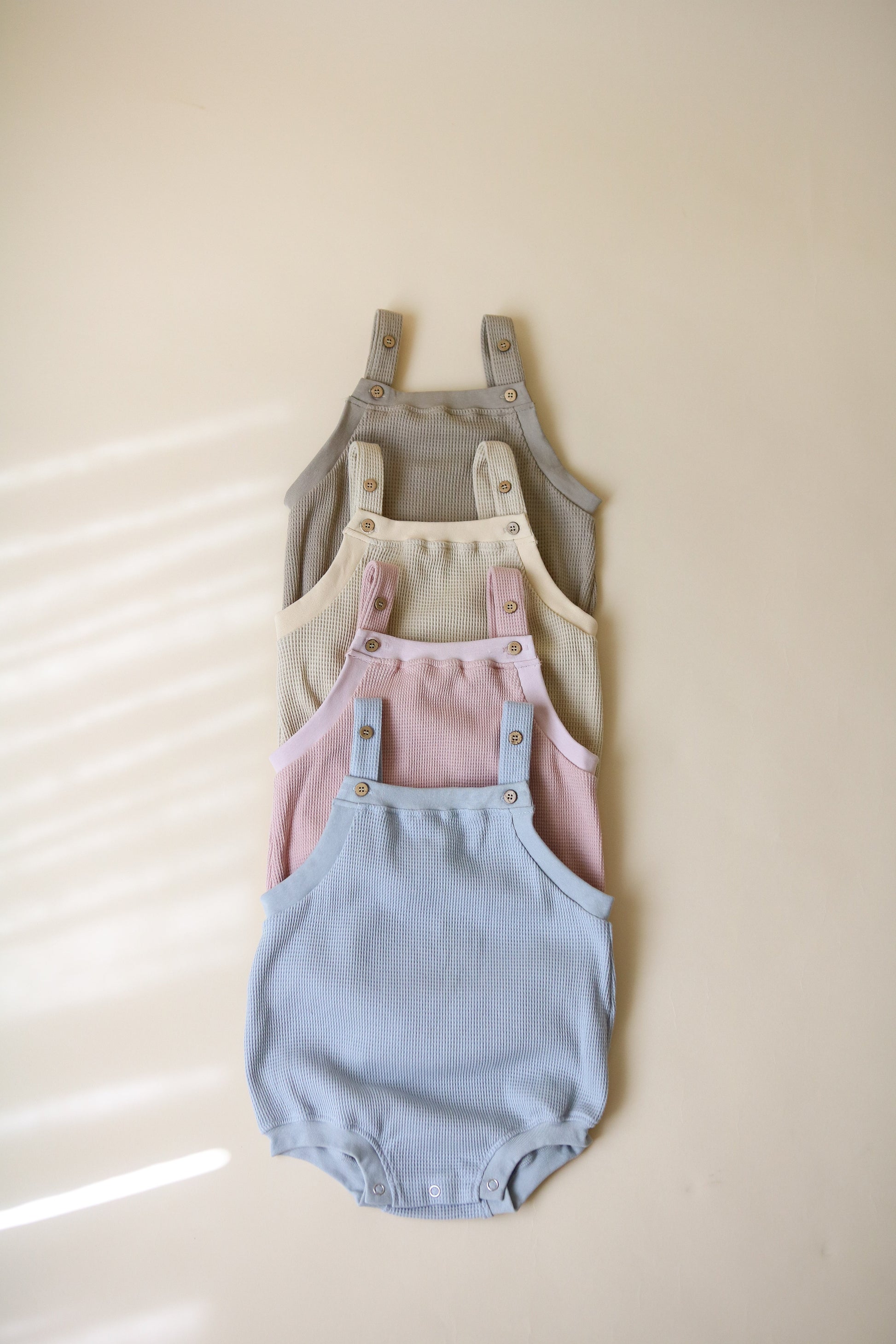 Give your baby the gift of comfort and style this summer with our Baby Waffle Overall Romper – a must-have for every little one's wardrobe!